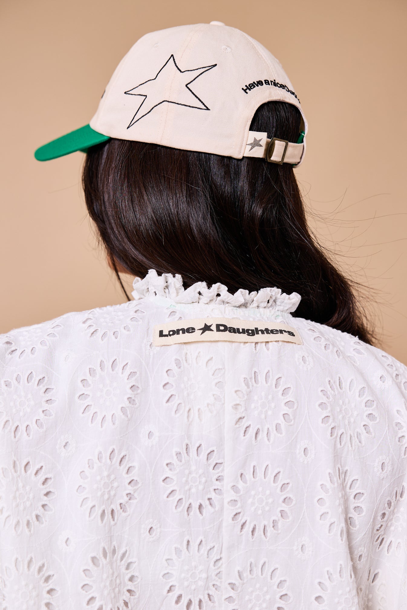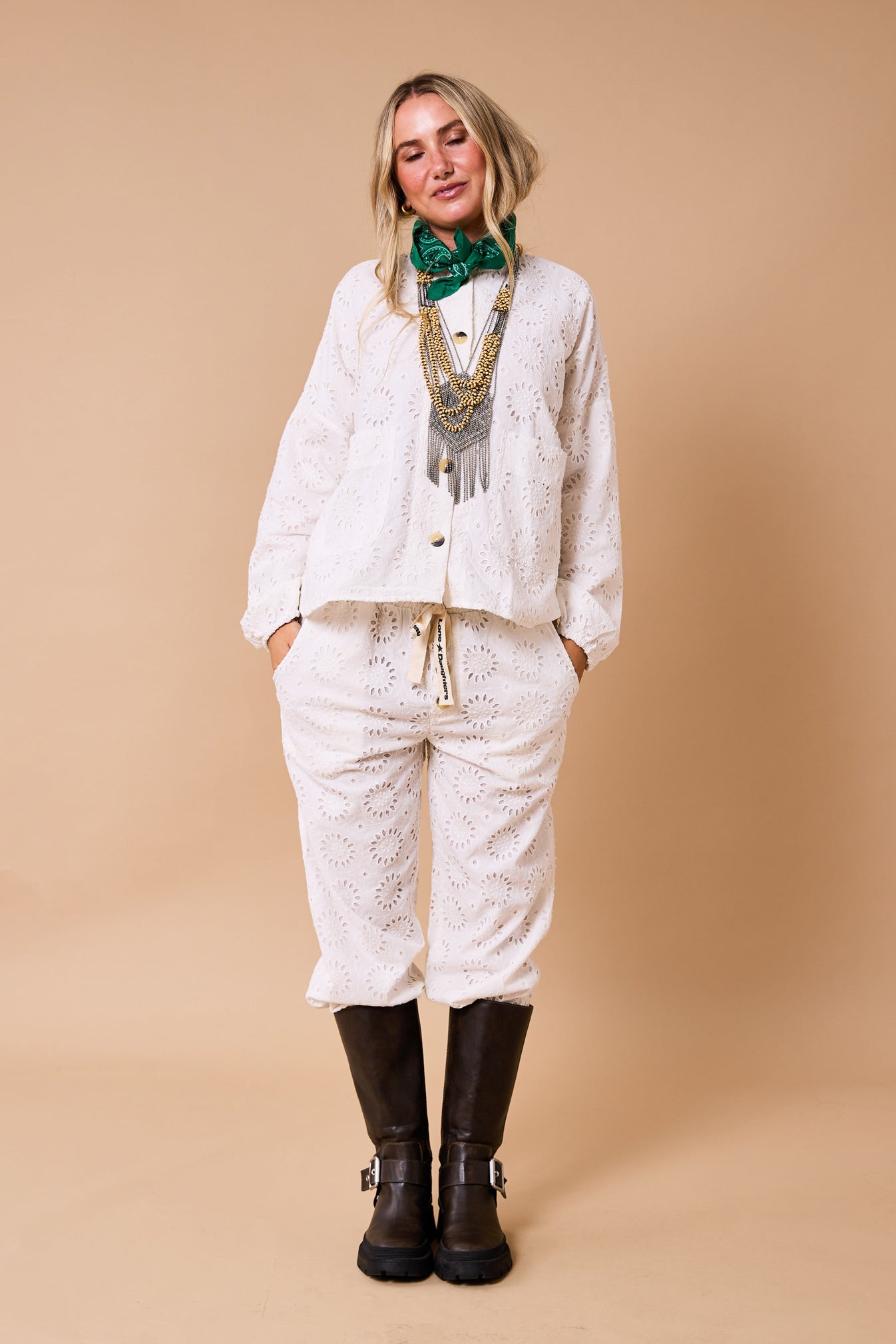 This 100% soft cotton embroidered anglaise set features intricate and large lacey circular cut-outs. As always, the set is fully lined in matching, ultra-soft 100% cotton voile for comfort and wearability.