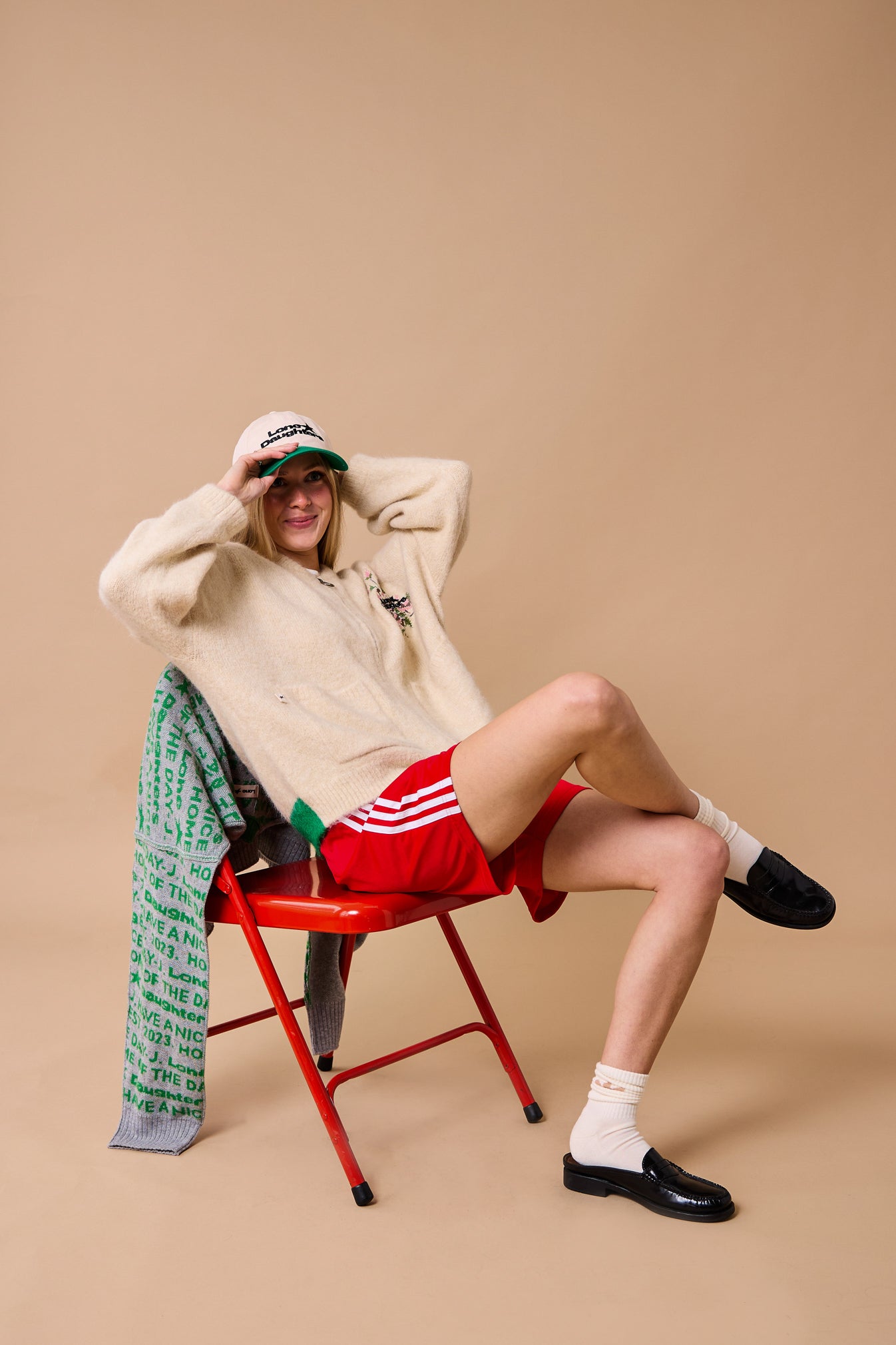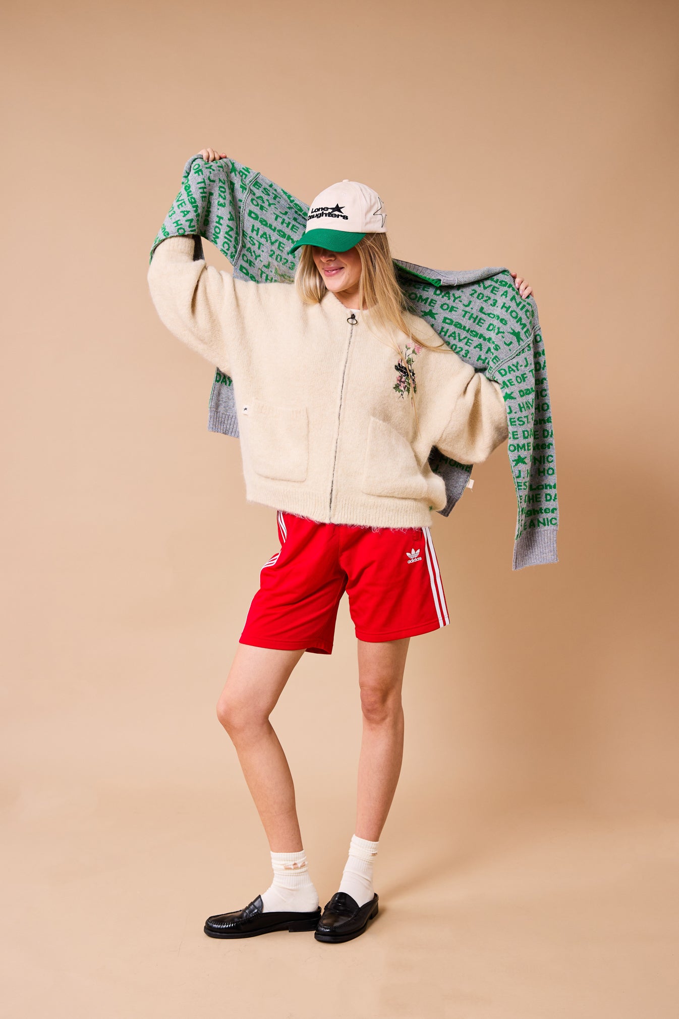 Not the usual thing to drop a cosy cardi in the warmer months but sometimes the weather doesn’t conform and we need to reach for a little cover up, so we prefer to offer you the cosiest one so you can continue to reach for it come autumn and grab it come winter. A lovely rounded shape with a metal ring pull zipper, our Vie En Rose cross stitch embroidery above the pocket and a fully branded back …. Just so anyone following you knows you’re a Lone Star Lover !