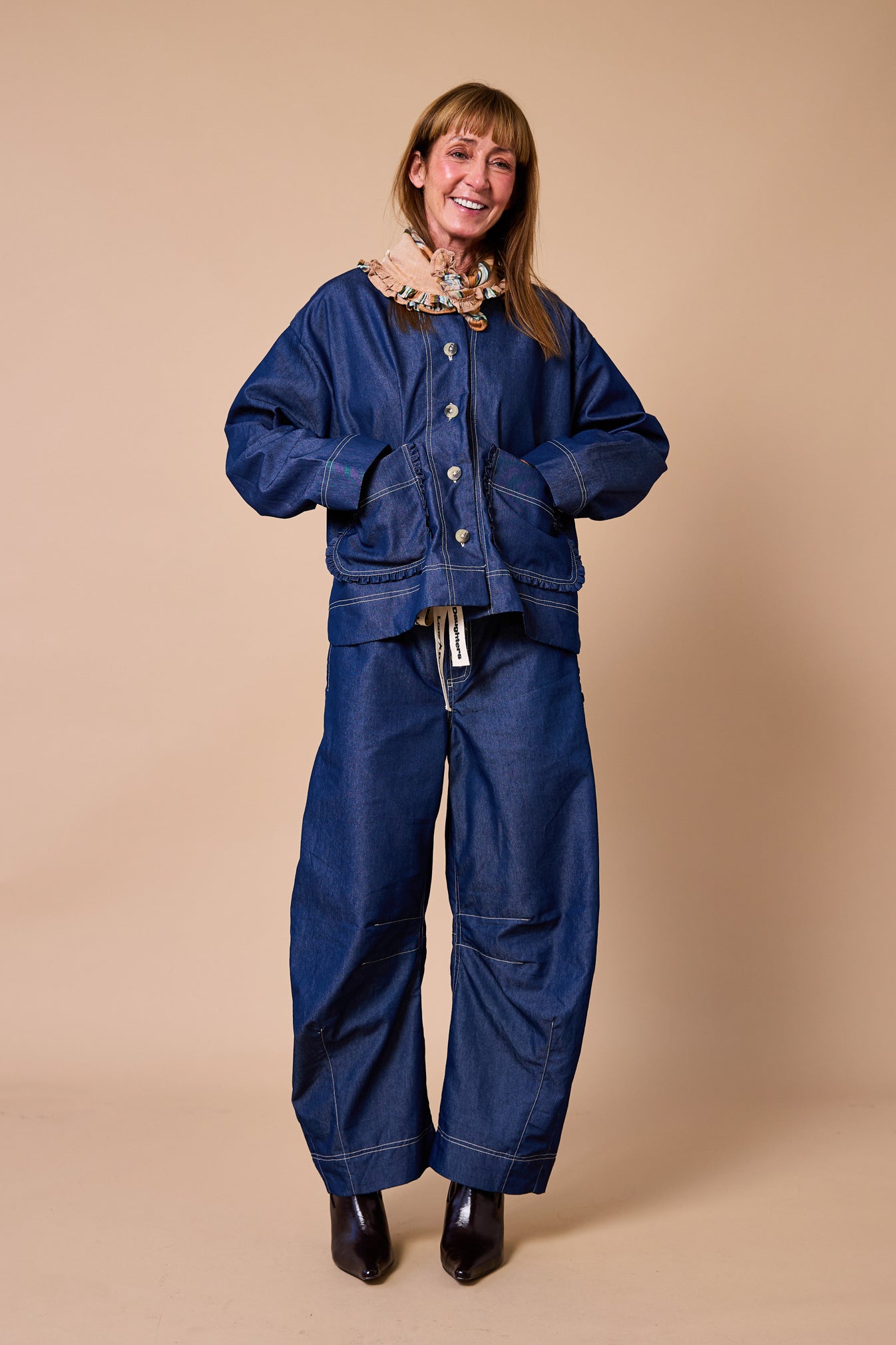 Designed in soft light weight indigo denim, we have introduced our awesome new pant ’The hoe down‘!She’s wide with casual structure and a hint of barrel, keeping our micro frill big back pockets and our classic drawstring front.
